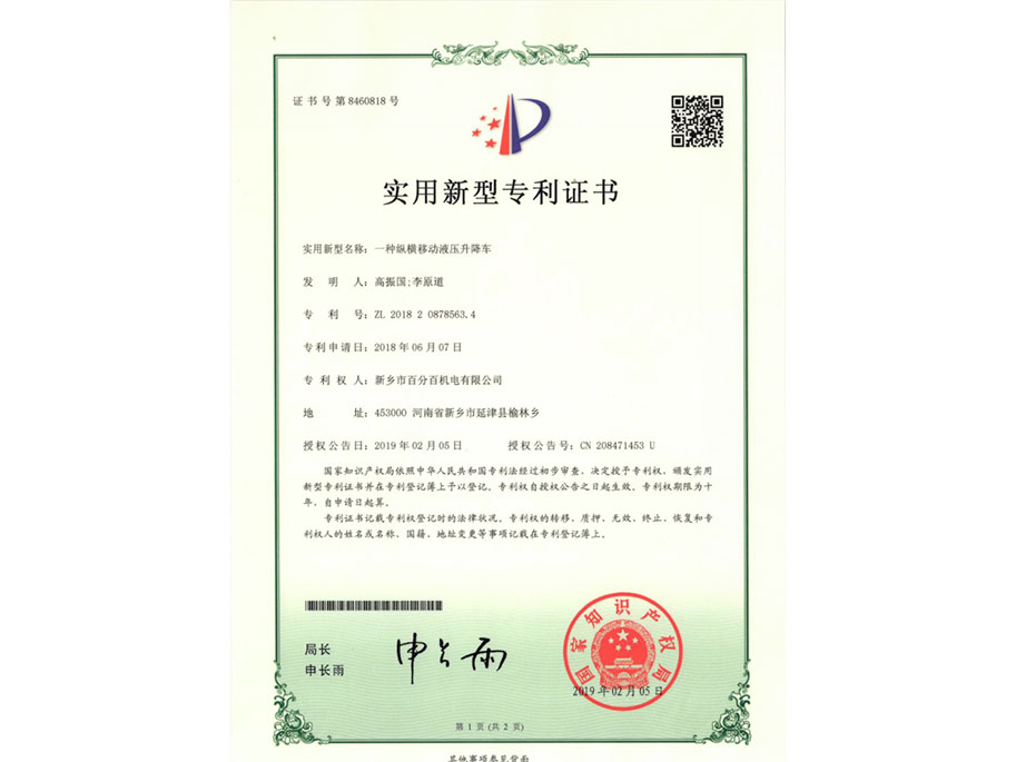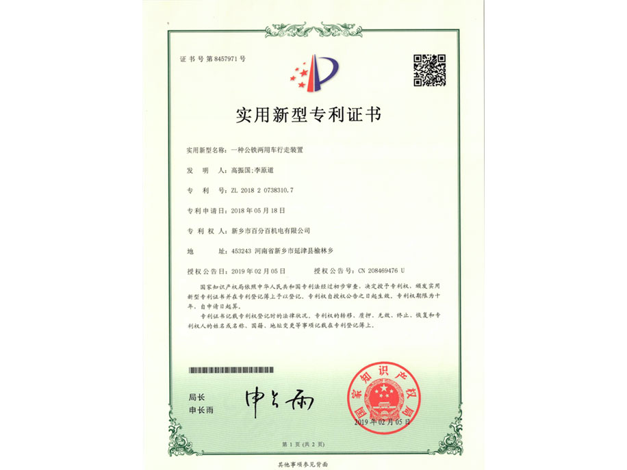 實(shí)用新型專利證書(shū)