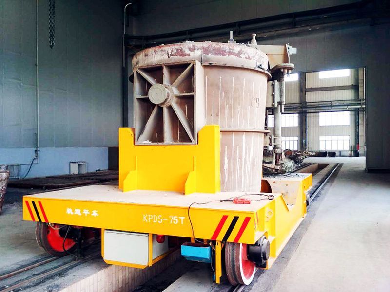 百分百公司定制的這款鋼包軌道車是一種特種電動(dòng)平車,是工廠用來轉(zhuǎn)運(yùn)特定的高溫鋼水包的一種以軌道做為運(yùn)行路線的鋼包車,由于鋼包軌道車高溫性和安全性較高,平車車體材料,傳動(dòng)系統(tǒng)的要求,電器控制的要求等都與普通軌道平車有很大區(qū)別。由于鋼包軌道車鋼水或鋼渣較容易濺出,為防止鋼水或鋼渣濺出,電機(jī)啟動(dòng)和停止均緩慢調(diào)速,為了防止鋼包高溫輻射,車體內(nèi)部設(shè)有隔熱材料,為防止鋼水溫度影響損壞電機(jī),鋼包軌道車采用雙電機(jī),一臺(tái)損壞另一臺(tái)能繼續(xù)正常運(yùn)行。