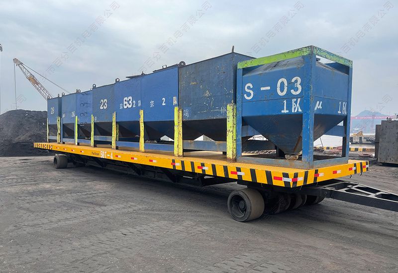 50噸工業(yè)用平板車拖車為全掛式平板拖車,主要用于車間、碼頭、倉庫、物流中心貨物周轉(zhuǎn)運(yùn)輸??梢杂貌孳嚑恳侠笮?、重型貨物,5噸以上的叉車可以拖拉載重為50噸左右的平板拖車。全掛式平板拖車結(jié)構(gòu)簡單,承載力強(qiáng),使用范圍廣泛,可以大大提高工作效率。